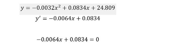 Con la misma ecuación encontrada, hallamos el porcentaje de RCD con el que se obtendría la máxima resistencia. =
