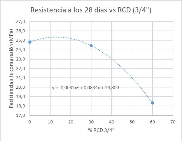 Gráfico 2. Resistencia a la compresión a los 28 días vs %RCD (3/4”)