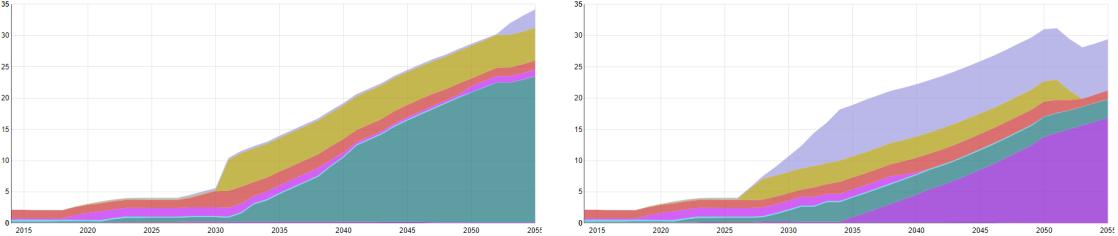 del 12% con relación al Escenario 1. Otro punto a tener en cuenta es que en ambos escenarios no hubo restricción por parte del avance de la energía nuclear. Aún así, los valores actuales se mantuvieron, y la expansión en relación a las otras fuentes era financieramente inviable.