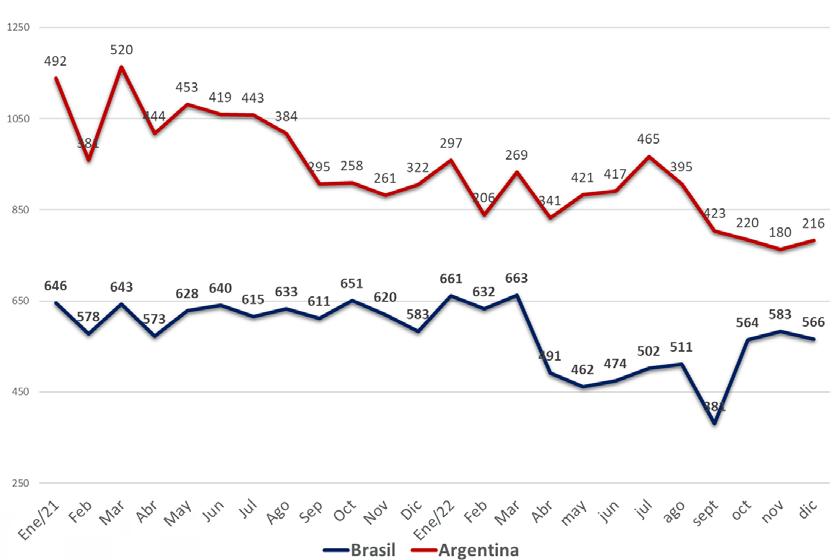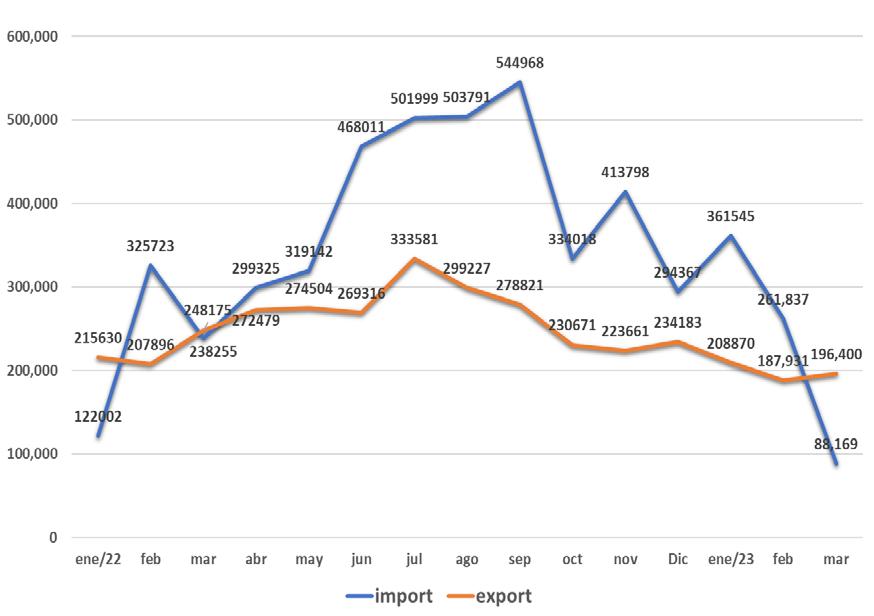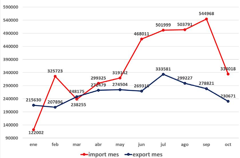 Como se observa en las figuras 46 y 47, el comparativo anual del comportamiento del comercio exterior, muestra un crecimiento importante desde 2020, tanto en exportaciones como importaciones.
