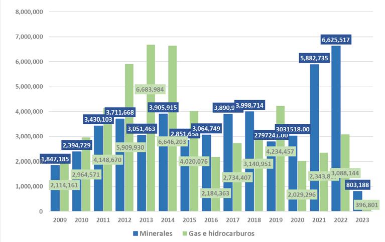 Por su parte, las importaciones irán creciendo con la pendiente positiva que muestra que, como hemos analizado más arriba, los precios y volúmenes de exportación, sobre todo de gas y minerales, están en descenso debido a varios factores globales y, adicionalmente hoy, por el incremento generalizado de los precios internacionales de los productos que importamos, debido a los niveles de inflación globales altos.