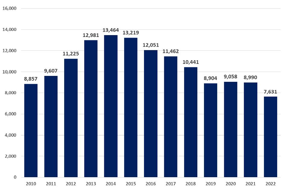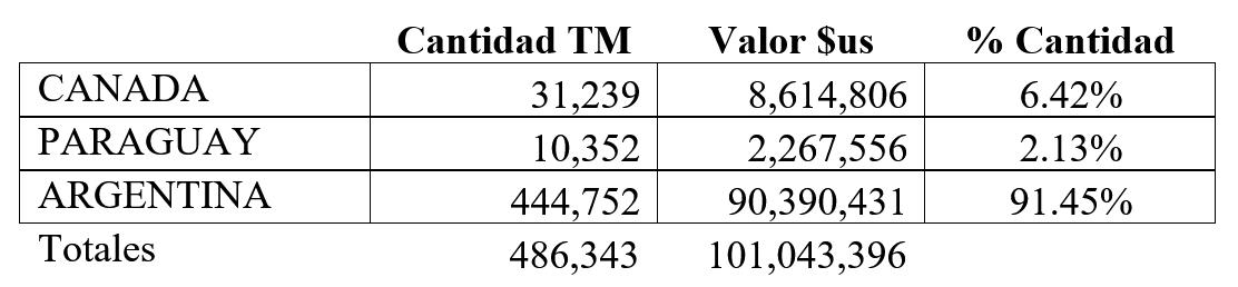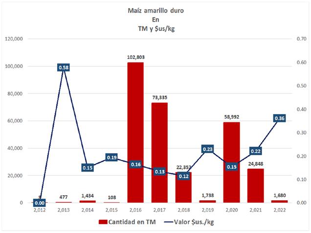 Importaciones bolivianas 2011-2022 en millones de $us y TM
