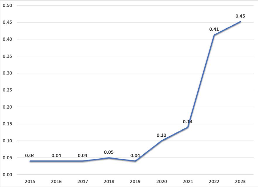 La última publicación del Assessing Reserve Adequasy (ARA) (FMI, 2021) indica que la ratio para Bolivia fue 0,57; por convención, se considera adecuado un nivel entre 1 y 1,5.