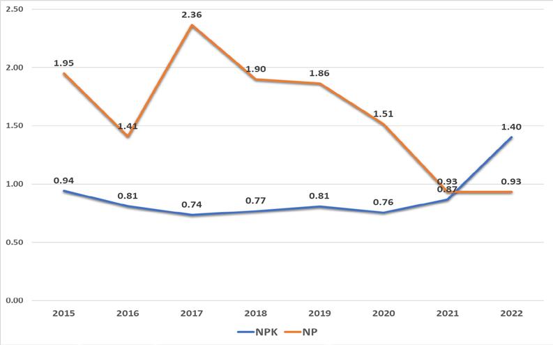 Una esperanza es la exportación de urea, una vez que se han superado, aparentemente los problemas técnicos y de producción de la planta de Bulo Bulo. Los precios elevados actuales del insumo hacen aún más importante su exportación. (Figura 45).