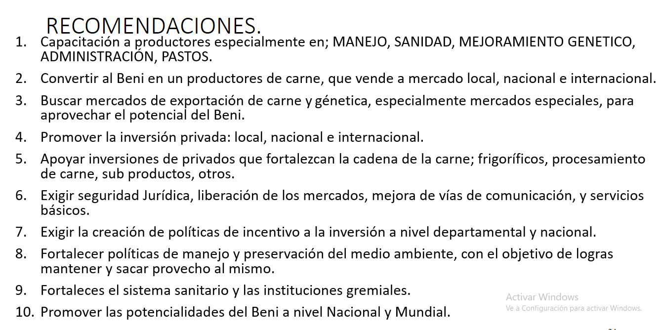 En este segmento, recapitularemos los principales hallazgos de cada sección y ofreceremos recomendaciones para orientar la efectiva implementación de las políticas económicas en el Beni.