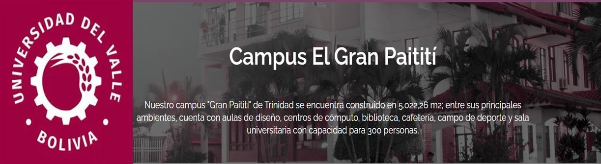 Seguros de la potencialidad del Beni como Departamento, Univalle toma la decisión de abrir la sede académica de Trinidad, sede que inicia sus actividades académicas en el año 1994. Actualmente, la sede académica de Trinidad funciona en el Campus El Gran Paitití, con una superficie construida de 5.022 m2, cuenta con 30 años y ha formado a 904 profesionales que aportan al desarrollo del departamento del Beni, del país y el mundo entero.