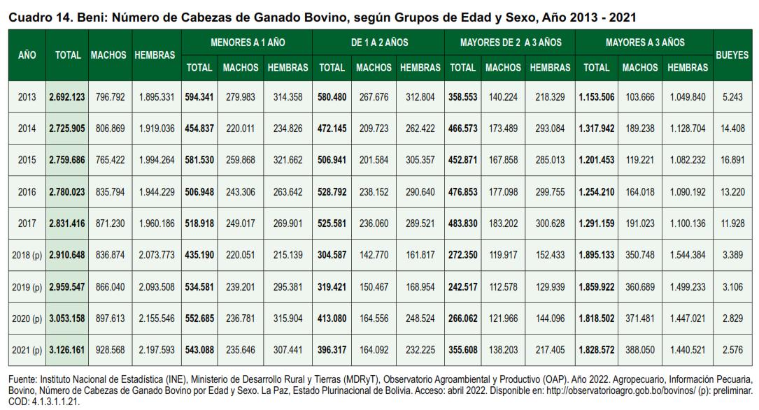 Visión de Desarrollo Departamental del Beni a través del Crecimiento Bovino