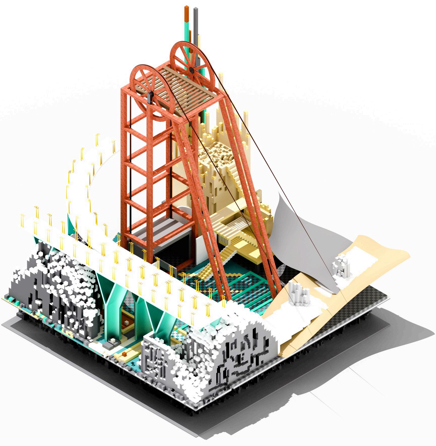 Thesis project based on an adonboned japanese coal mining island. The project focuses on video game/virtual reality and adapts the level designing and gamification methods in the de sign to create a uptopian world where play will be the new work to generate economy using gold farming techniques used in video games such as World of Warcraft.