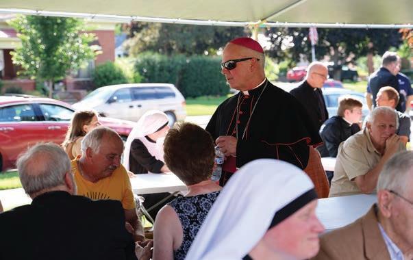 and what’s the importance of its sacred symbols and Archbishop Emeritus Allen Vigneron of Detroit catechised the audience on “The Mother of God - Owning and Owned.” Perpetual pilgrim Aleah Vetsch of Silver Lake gave witness to her pilgrimage journey along with fellow pilgrim seminarian Matthew Collins of Murdock. Following Adoration and Benediction, the Welcome Home Celebration ended with an outdoor barbecue sponsored by the local Knights of the Columbus. (Photos by Christine Clancy and Christy Baker)