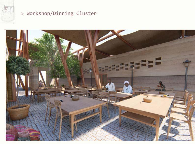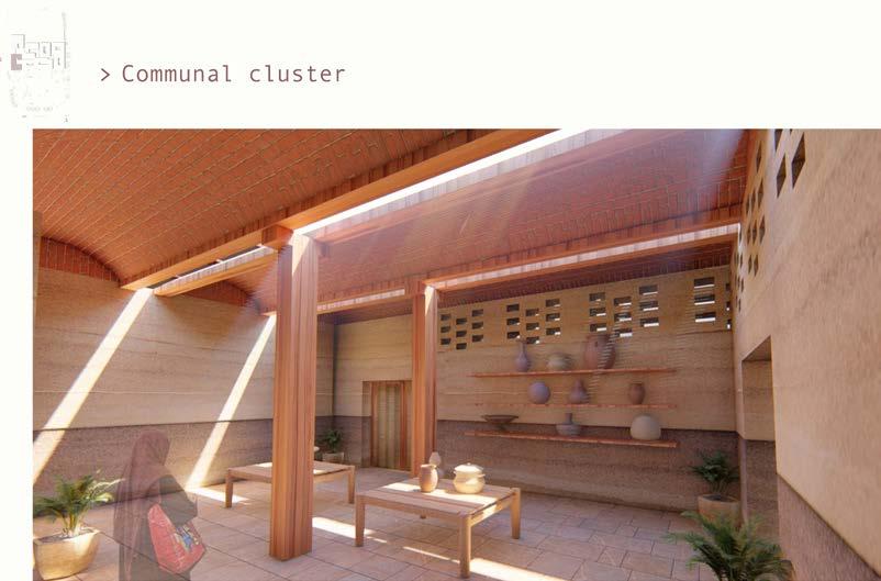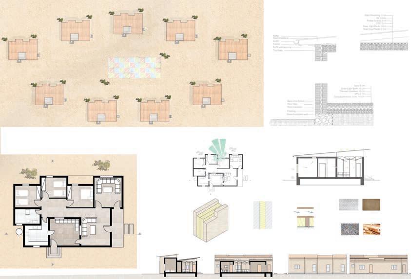 The aim was to create an integrated space that is not only a living quarters, but a place to interact and communicate as well as a place to work and provide for the community and to display and sell the products created. Environmental Sustainability was achieved by using thermally insulating local materials as well as locating the buildings along the east-west axis for optimal heat transfer needed. In addition to using the landscape to act as a thermal regulator. Summer