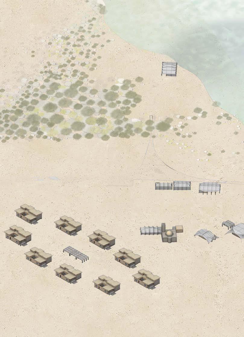 In my Bachelor project we are presented with Qulaan Mangrove Beach which is known for it’s biodiversity, the delicate ecosystems and the rich culture.All of which have helped in creating a unique situation for an ecological ecolodge. Located in Wadi Al Gemal Protectorate the ecolodge aims to be as sensitive as possible while addressing the concerns and needs at hand.