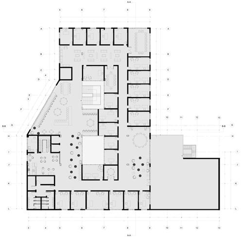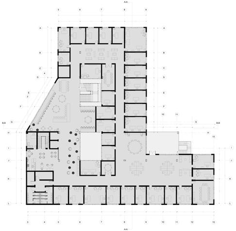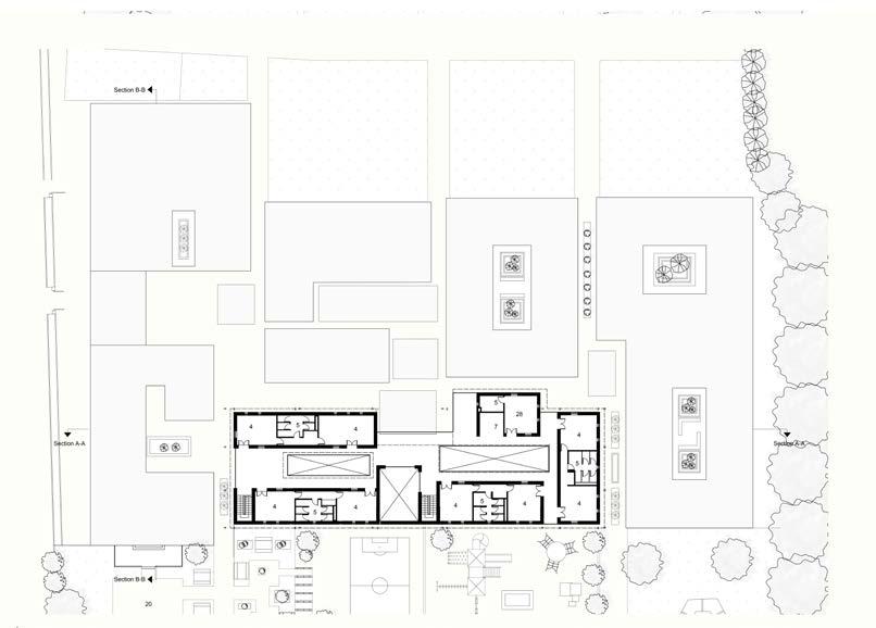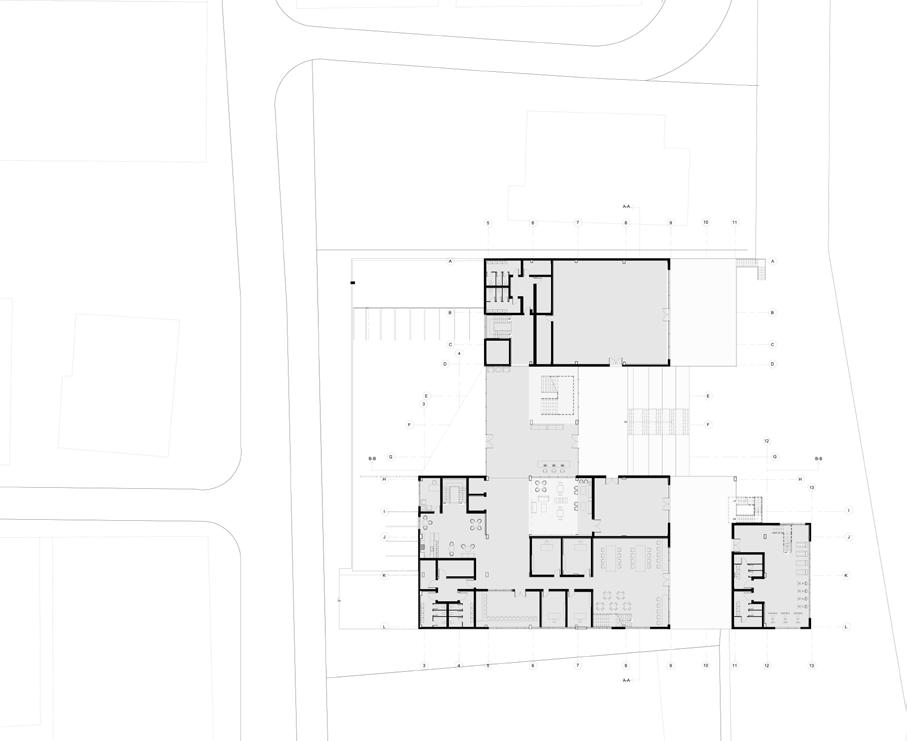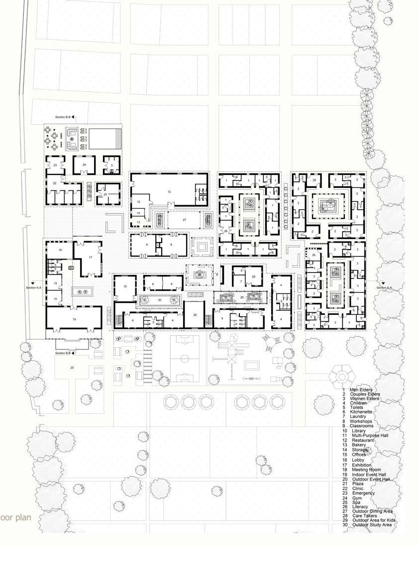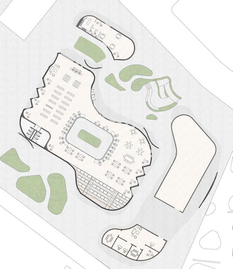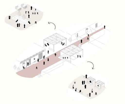 The Main spine can host more than one activity. it’s playful and energetic. It drives you to the other courts and the plaza.