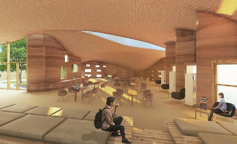 Inspired by the architectural style and the use of vaults and domes, the Catalan Vault was used to add an element of fluidiwty and movement to the structure. Moreover , sustainable materials such as rammed earth and stones are used to help protect from enviromental factors.