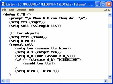 Hình I-4: Xây dựng chương trình bằng ngôn ngữ AutoLISP khi không sử dụng môi trường lập trình, ta sẽ luôn phải tự kiểm soát cú pháp và các lệnh mà không có bất cứ hỗ trợ nào vì thế khả năng nhầm lẫn là rất lớn.