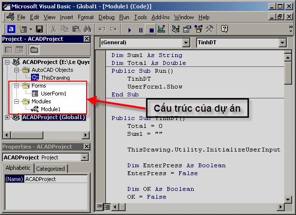 Hình II-1: Cấu trúc của dự án thể hiện trên VBA IDE