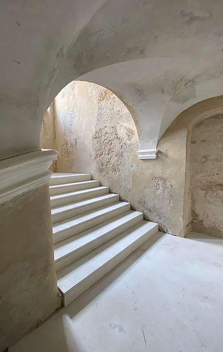 The history is like a story and can be read through materials. Because the palace was built over a long period of time, the different periods are reflected through the materiality of the facades, exposing various bricks and plaster layers. In the pictures the many historical surfaces of same building complex, which are now exhibited, can be seen.