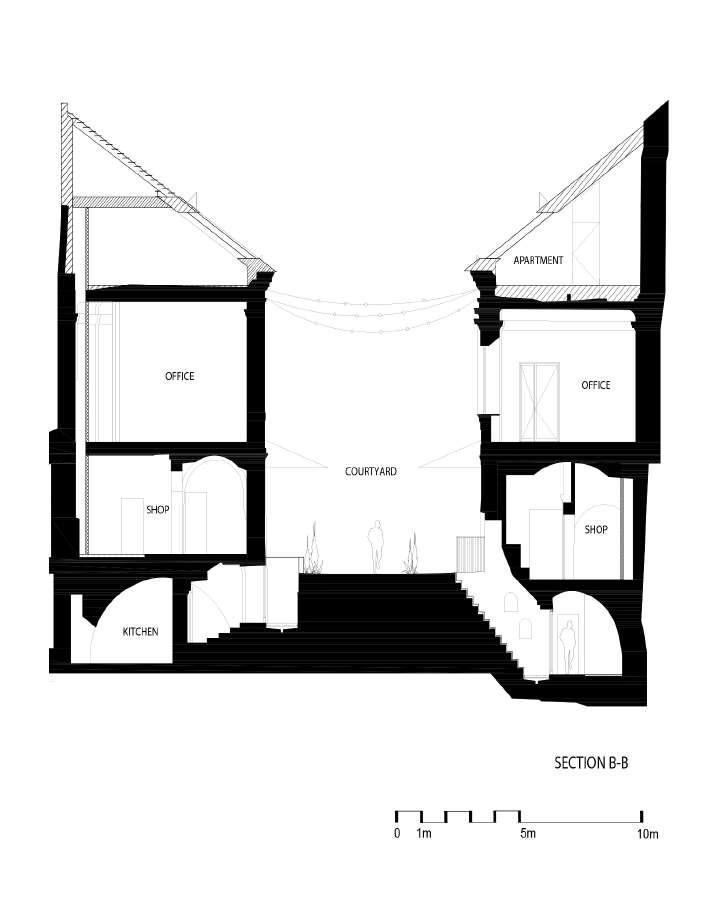 The project was designed and implemented by maintaining a contact with the surrounding communities as one of the goals of the project was openness to the citizens by establishing a new public space - passage-courtyard. The uncovered appearance of the building is consistent with its urban context, which also changed in a similar historical evolution. Many closed possessional-type estates prohibit public access, while this project created an open space that every citizen can enter and get familiar with the valuable features of the complex.