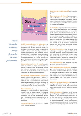 est différente : les collègues des Impôts n’ont pas GTT, leur système d’horaires variables est plus souple. Il a également constaté une certaine méconnaissance chez les agents des Impôts des tâches de recouvrement contentieux, qu’ils sous estiment visiblement.