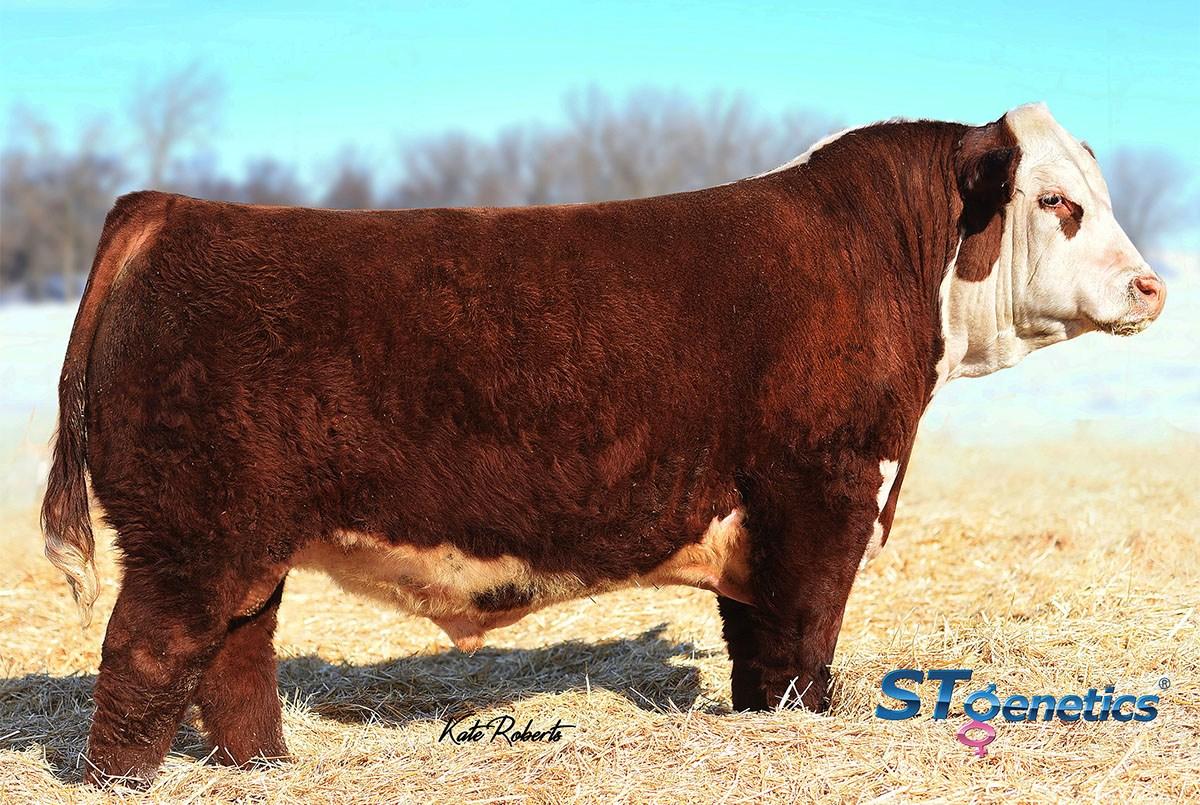 Here’s a powerful, dark red, goggle-eyed Hometown grandson from a reputation program at KNOLL CREST FARM .