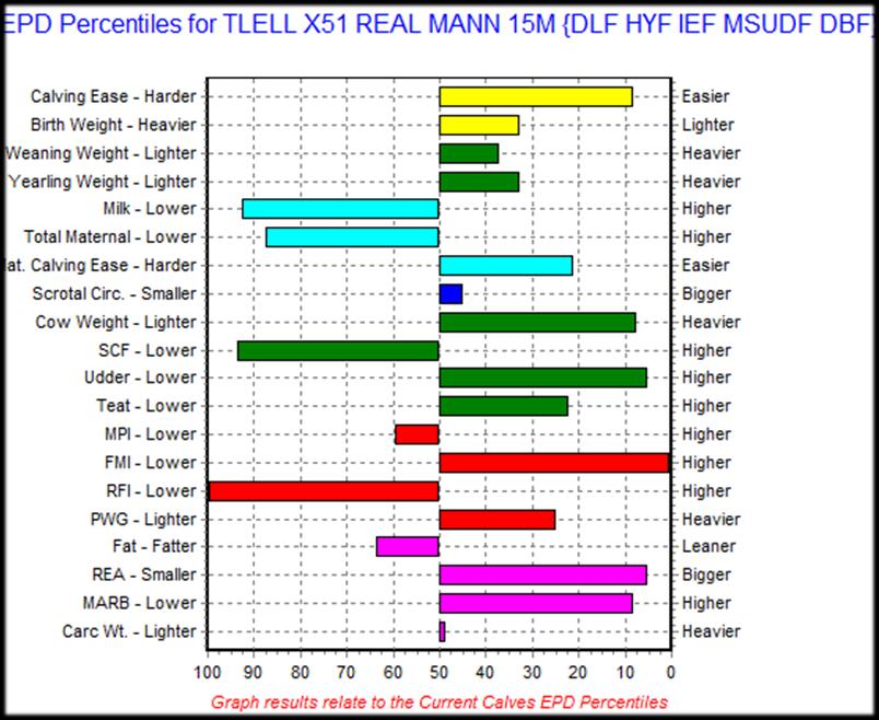16 of 20 categories on his EPD chart are above average Trait leader for BW, CE, MCE, SC, Udder, Teat, MPI, FMI, REA, MARB