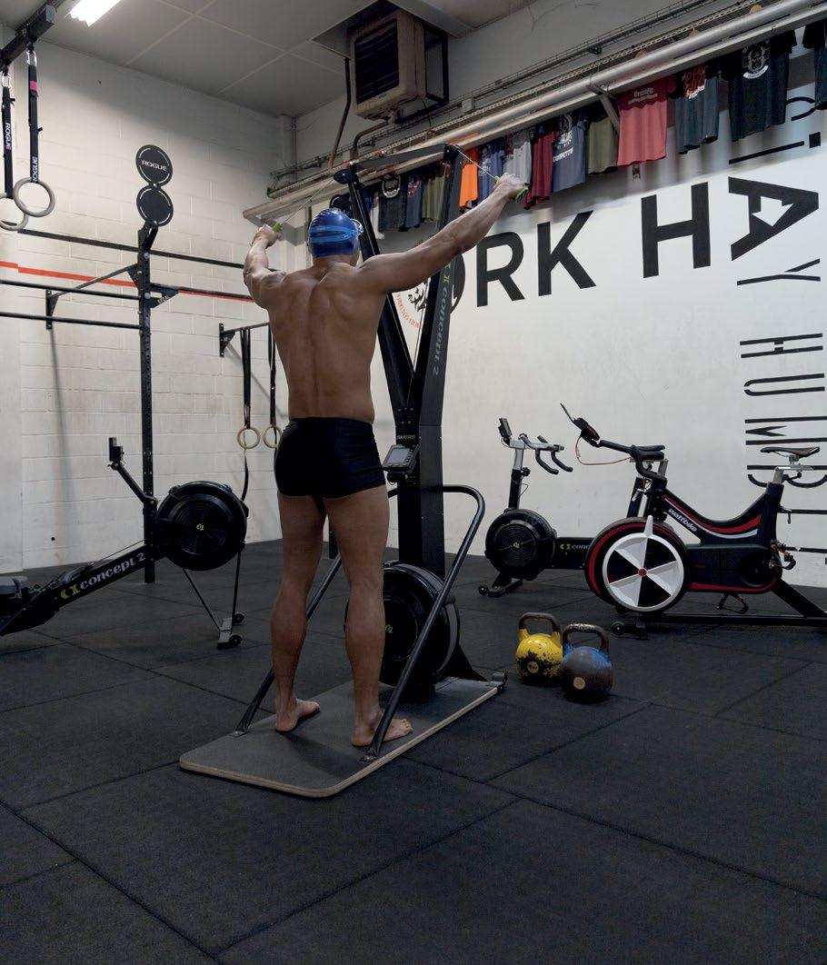 Au fil des séances, penchez-vous de plus en plus en avant avec votre buste ; vos bras monteront simultanément ; votre geste ressemblera de plus en plus à la brasse. À 2 ou 3 jours d’écart, optez pour une progression voisine sur elliptique. Débutez mains en bas des rames. Peu à peu, prenez-les de plus en plus haut. À la fin de la semaine, votre mouvement s’apparentera au crawl… mais sans le retour aérien et son freinage agressif pour les tendons de la coiffe des rotateurs.