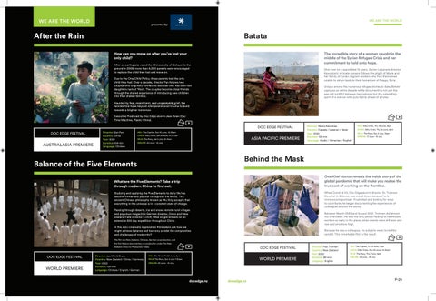 Bravely embracing the future of film festivals around the world, Doc Edge is cementing itself as a mustexperience hybrid event with in-person and virtual screenings, allowing all of Aotearoa to connect with the festival and the stories of our world.