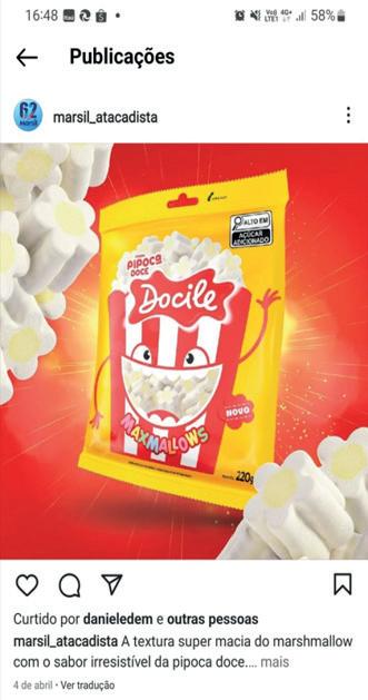 A Docile trouxe ao mercado, em primeira mão, o exclusivo Maxmallow sabor Pipoca doce, uma sensação com gostinho de cinema, e o Maxmallow para Assar, um produto que se transforma no fogo! Engajamos nossos clientes a destacarem esses lançamentos sensacionais no ponto de venda. Com as ações de ponto extra em 19 clientes, tivemos um crescimento entre 136% dentro da linha em comparação ao ano passado.