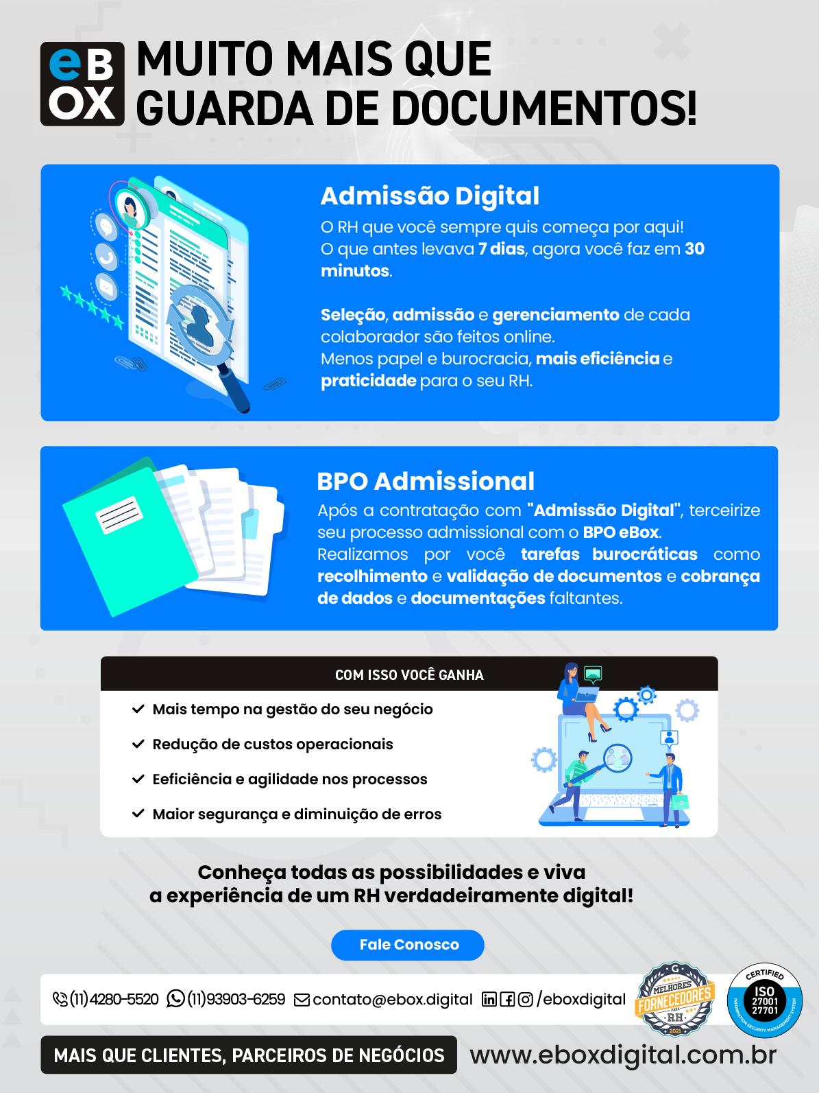 Reduza custos, agilize os processos de contratação da sua empresa de forma descomplicada, ágil e segura por meio do APP e sistema WEB. Você efetua o cadastro do funcionário de maneira simples e descomplicada com captura da foto, assinatura e aceite de documentos para admissão, manutenção e demissão. Tudo isso com captura de documentos pessoais e profissionais mantidos em sistema de gestão com total segurança e controle.