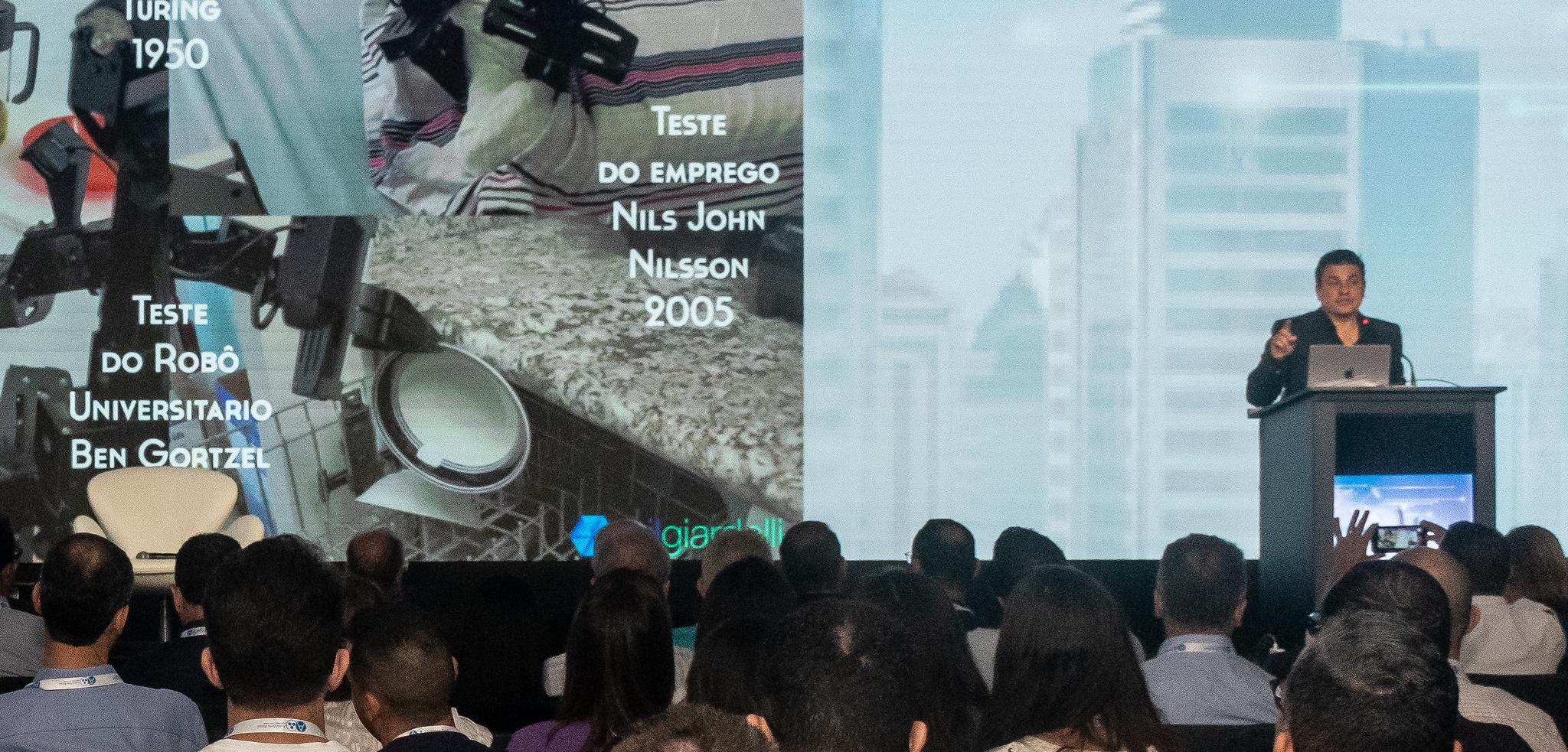A superação do Teste de Turing, o fim da Lei de Moore, a transição do B2B (business to business) para o H2H (humano para humano) e a chegada da era pós-smartphone são elementos que estão catalisando inovações sem precedentes, destacou Gil Giardelli, professor e apresentador de “O Imponderável”, na RecordNews, ao abrir a 6a edição do RPA & AI Congress.