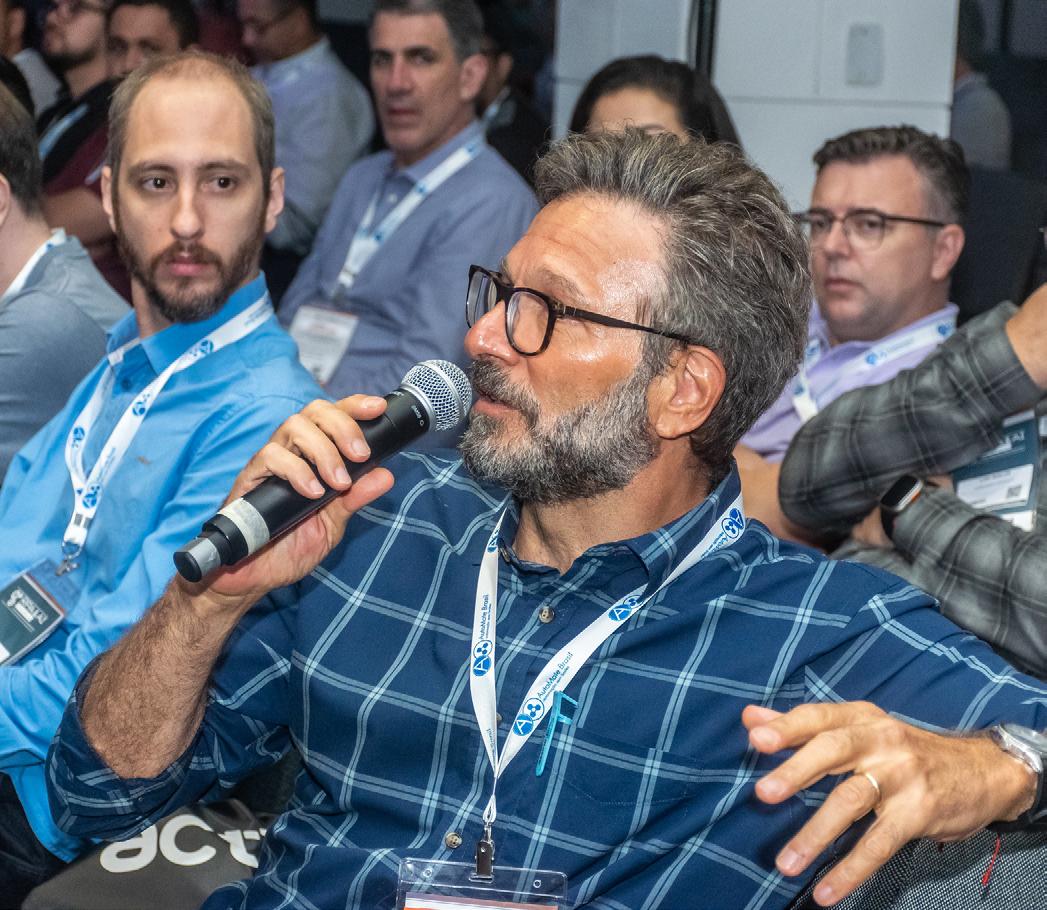 o tom do que seria debatido posteriormente. Cezar Taurion, da Recore, contextualizou que inteligência artificial data de 1956 e foi evoluindo com o passar dos anos. “A própria inteligência artificial generativa não surgiu agora; ela foi criada há anos e agora se popularizou com o modelo GPT e a aplicação em cima dele, o ChatGPT, que permitiu às pessoas interagir com a tecnologia, que responde como se fosse uma pessoa. Isso para muita gente foi uma virada de chave”, assinalou.