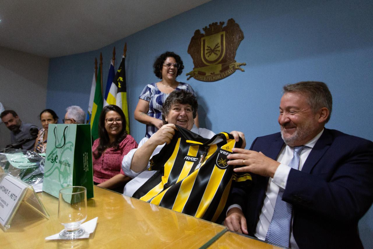 Tradição. Neto presenteou Gérard Maréchale com a camisa do Voltaço
