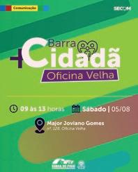 Barra Cidadã, que promove atividades de saúde e bemestar para os cidadãos do município, como exames citopatológicos, aferição e pressão, instruções para gestantes, orientações odontológicas, distribuição de kit de escovação e outros serviços de convivência. Desta vez o evento acontece na Oficina Velha.
