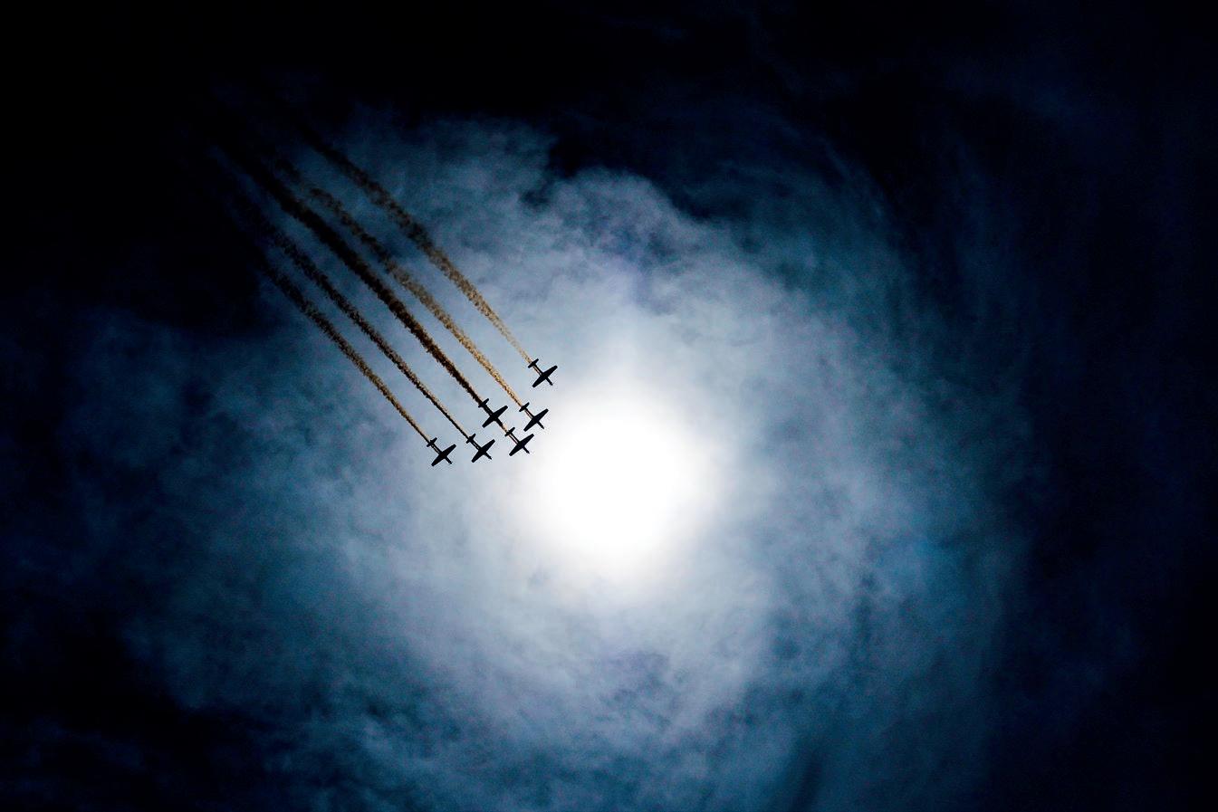 A FAB realizou, nesta quinta (20), na Base Aérea de Brasília, a cerimônia alusiva ao sesquicentenário de Santos Dumont, Pai da Aviação e Patrono da Aeronáutica, com show da Esquadrilha da Fumaça | @ricardostuckert