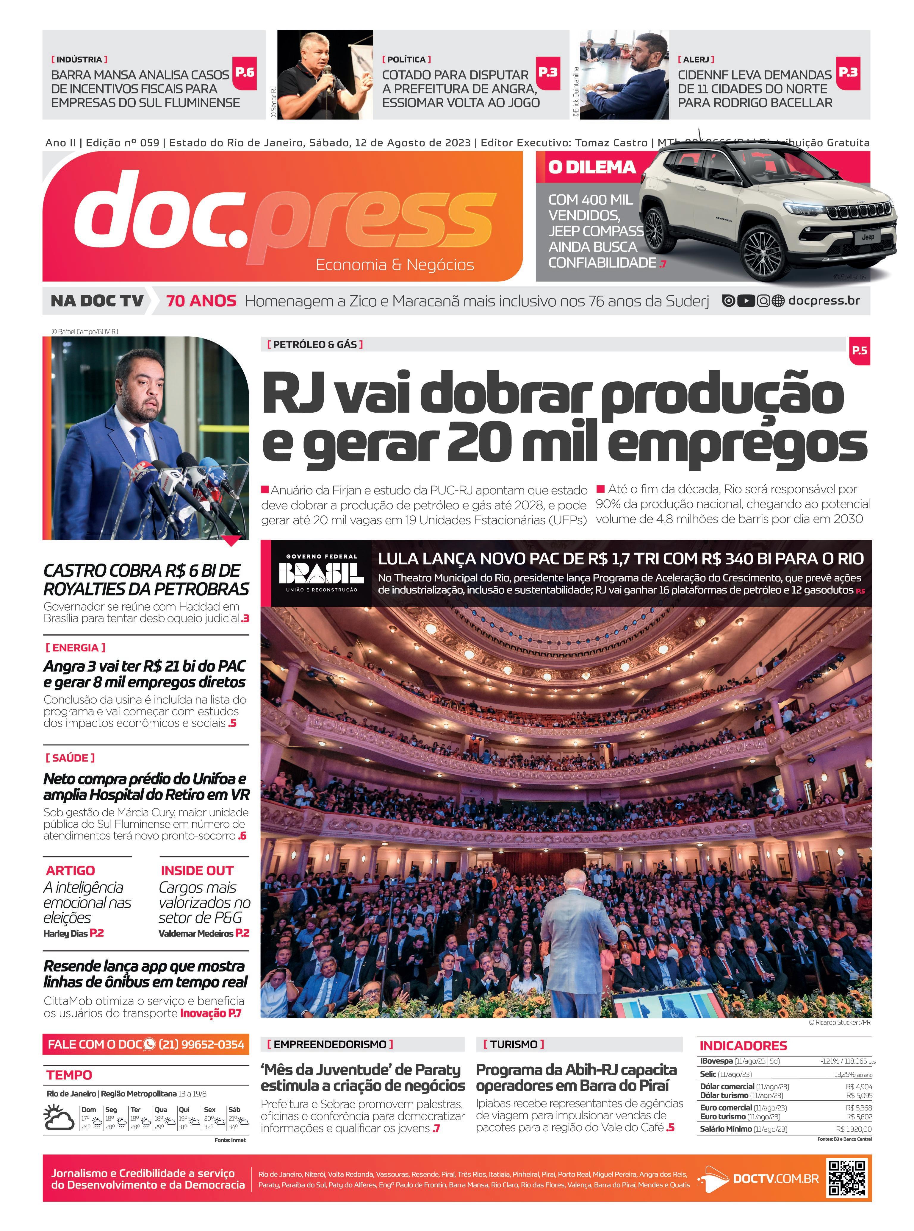 12.AGO.23 FALE COM O DOC | Dê sua opinião e mande sua sugestão de pauta: redacao@docpress.inf.br ou (21) 99652-0354