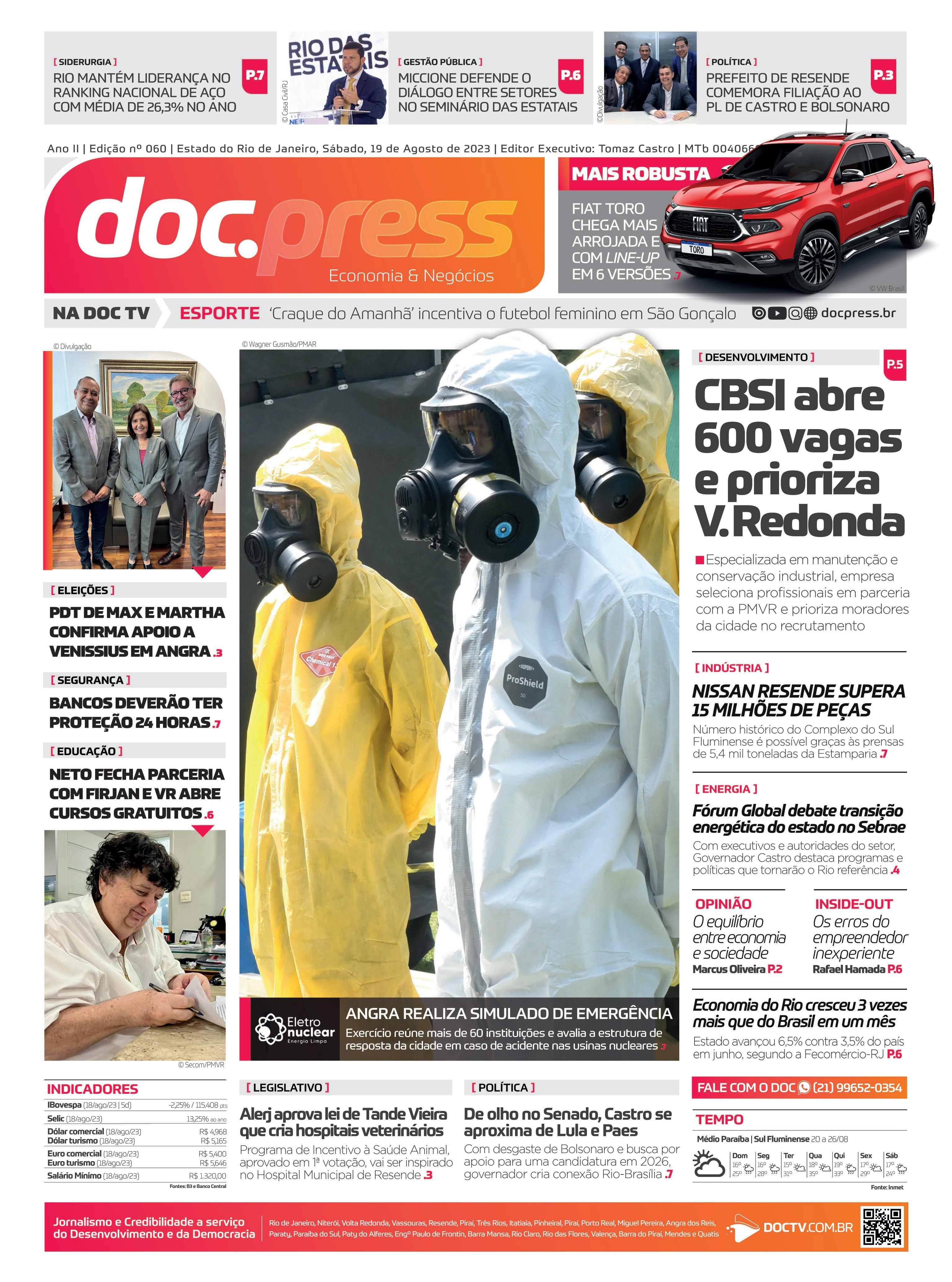 Sua marca 50 mil leitores mensais. 2 mil impressos 3 mil digitais 11 mil seguidores ECONOMIA 19.AGO.23 ESTADO DO RIO DE JANEIRO www.doctv.com.br SEU DOC SEMANAL 6