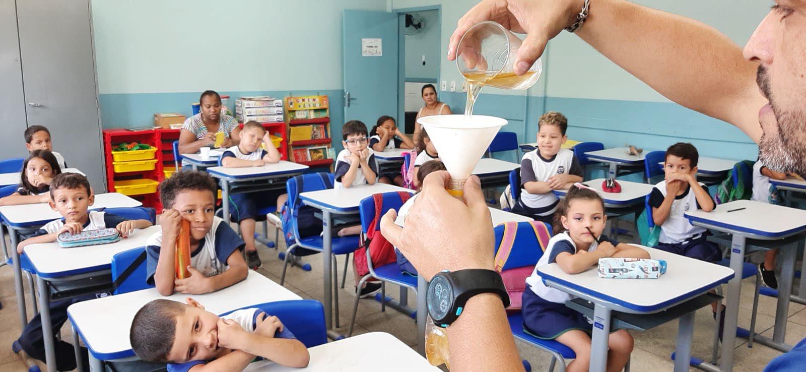 O ‘Trata Óleo’, da concessionária Águas das Agulhas Negras, sensibiliza mais de 2 mil alunos da rede pública de ensino de Resende. Só em 2024, o projeto recolheu 21,5 mil litros para reciclagem | @grupoaguasdobrasil