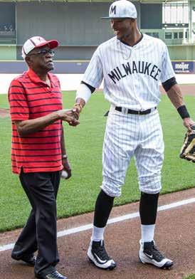 As a part of the annual Negro Leagues Tribute Game, Brewers players wear uniforms inspired by the Milwaukee Bears, the city’s 1923 Negro National League club. The game-worn jerseys are signed by the players and auctioned off online. Proceeds from the auction go to Brewers Community Foundation and are earmarked for the Negro Leagues Baseball Museum in Kansas City and Yesterday’s Negro League Foundation.