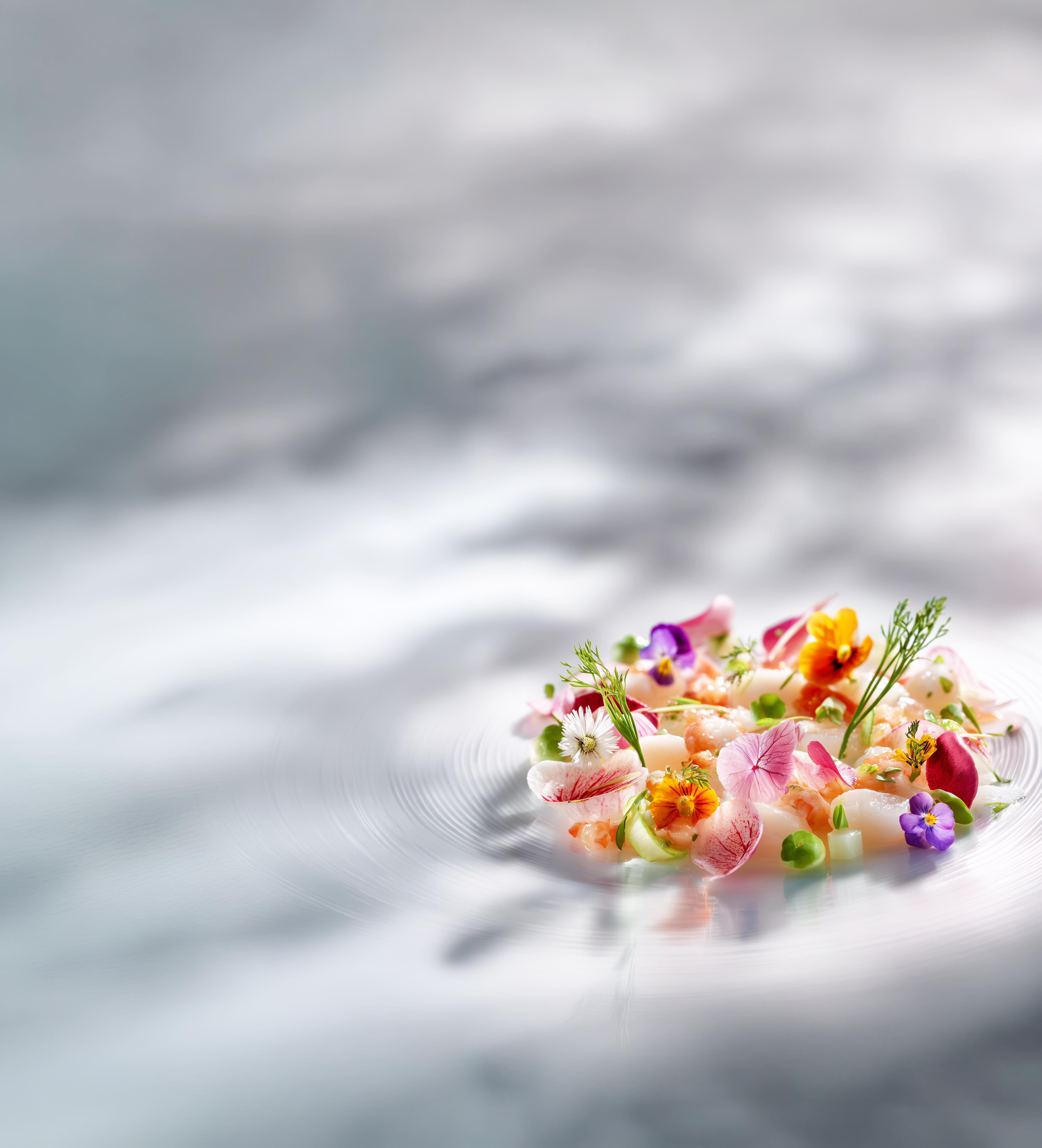Salātu maisījumu liek uz šķīvja kā pamatni. Zemenes sagriež uz pusēm vai ceturtdaļās, redīsus — plānās šķēlēs, avokado — šķēlēs vai kubiņos. Cukurzirņu pākstis, ja nepieciešams, pārgriež gareniski.
