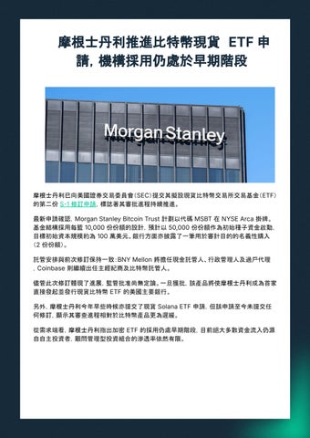 另外,摩根士丹利今年早些時候亦提交了現貨 SolanaETF 申請,但該申請至今未提交任 何修訂,顯示其審查進程相對於比特幣產品更為遲緩。
