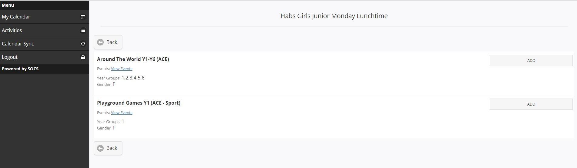 Find the name of your activity and click ‘ADD’.