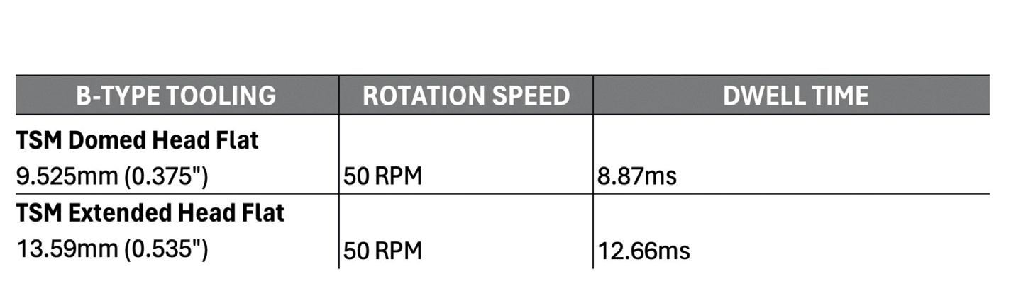 Meanwhile, on that same press, a B-type punch with TSM domed head with extended head flat (13.59mm, 0.535in) would have a dwell time of 12.66 milliseconds (Figure