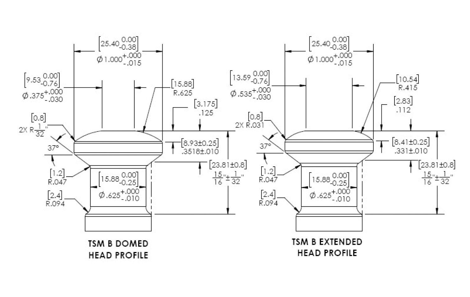 2). Figure 3 illustrates the differences in dimensions between a standard B-type TSM domed head and TSM extended domed head. The larger head flat increases dwell time by more than 43% without reducing the turret speed.