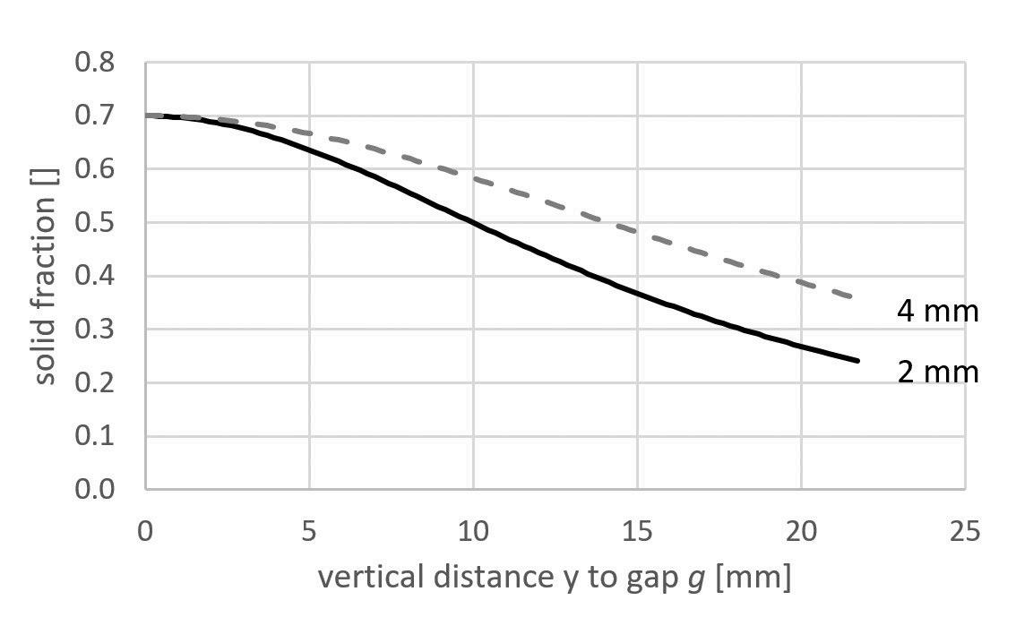 Figure 3 shows the progression of the solid fractions for two gaps, 2mm