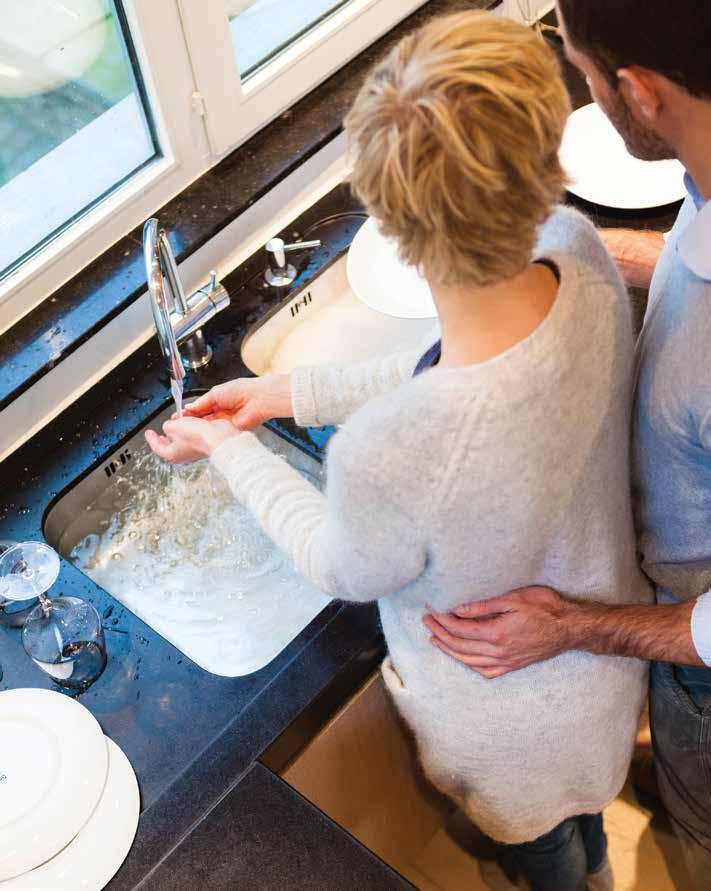 J Perfekte Hygiene, da auf Wunsch sofort Warmwasser zur Verfügung steht und die Menge des gespeicherten Warmwassers minimiert wird