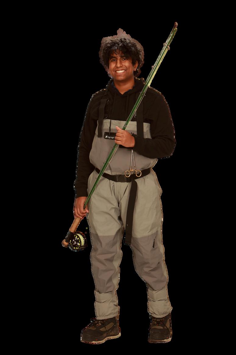 ith essential gear, Mikhail is always prepared for his fishing escapades. His de waders to keep dry, sturdy wading boots for traction, and, of course, a fishing rod. Investing in quality equipment is crucial, with Mikhail noting spent over a thousand dollars to ensure he has everything he needs for he water. He recommends starting with a more affordable rod and reel for lers, as they provid ll di i h i h b ki hrough fly fishing, art of his high schoo