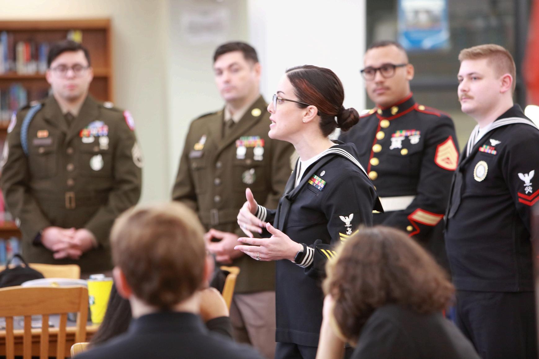 Trinity Astacio, an 11th grader inspired by her brother, aims to join the Army for service and travel, preparing for future challenges. Senior Dominick Gortych found a military recruitment event helpful, leaning toward the Navy for camaraderie and opportunities in Nuclear Engineering. Aurora Rodriguez is interested in the Navy Corpsman role, blending her passion for art and space with medical opportunities. Tracy Lopez, exploring options in the Air Force, Marines, or Navy, had a positive recruitment experience and is actively researching and preparing for the ASVAB