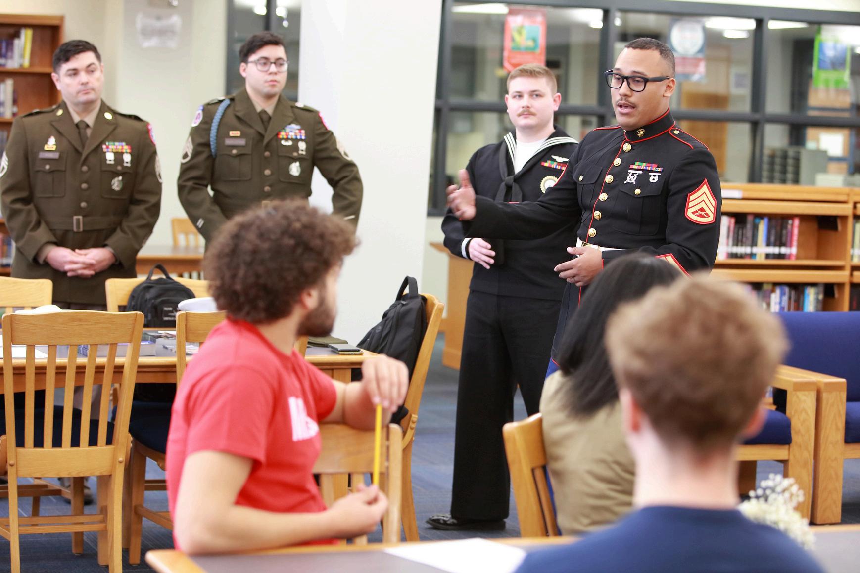 SSGT Patrick Blake from the Marine Corps visited Pocono Mountain West High School, sharing his journey to inspire students about military service With twelve years of experience as a ground electronics technician, he recounted stories from his time in Okinawa, Japan, and expressed his passion for the Marine Corps, which grew after meeting his wife, also a Marine Approaching retirement, he hopes to teach and help others succeed, encouraging students to remain open to opportunities.