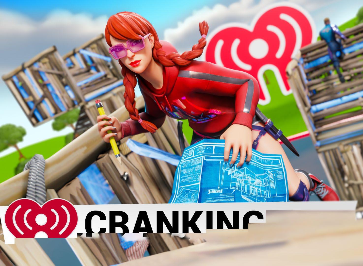 Above “Cranking 90s” in iHeartLand on Fortnite is a building game where users compete to be the first to the top.