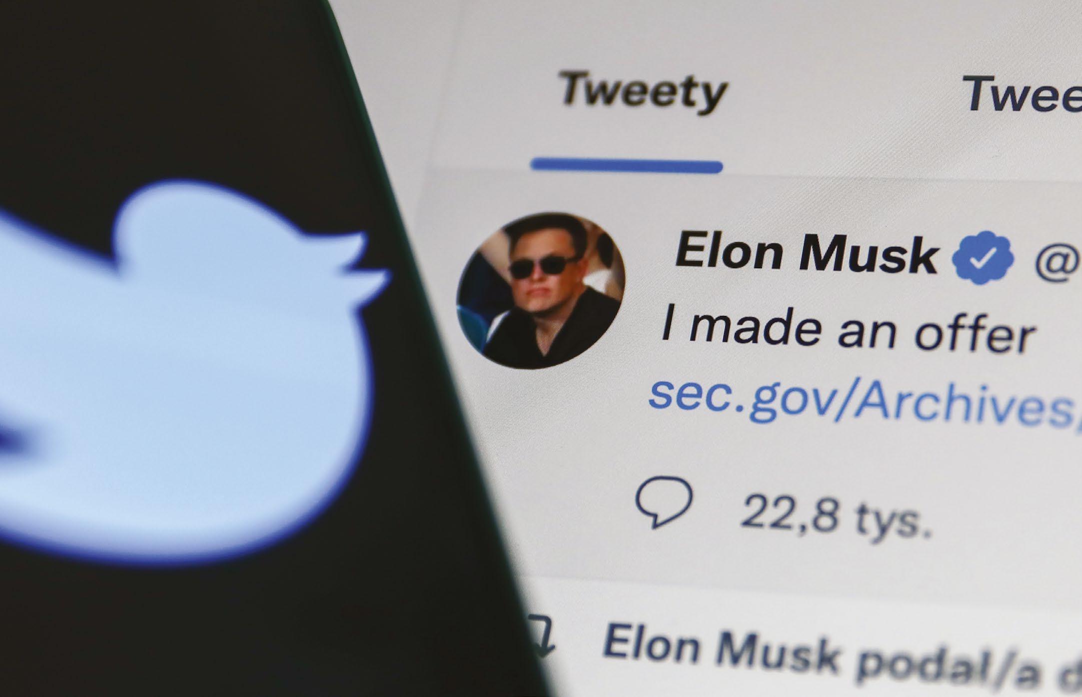 Above A tweet by Elon Musk as seen on a phone in Poland in April.
