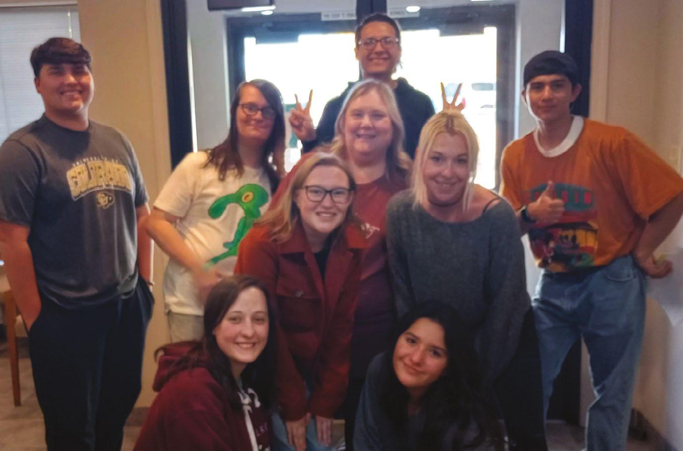 Right Sandy Beeler, second from right, with Elko High School students who participated in “The War of the Worlds” special.